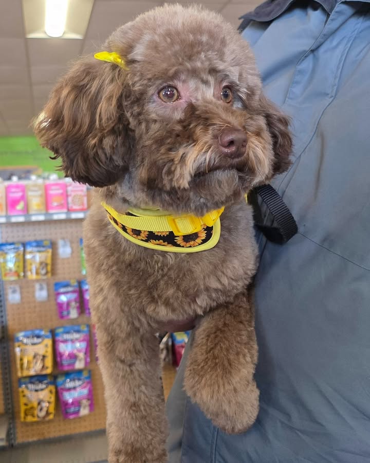 This sweet girl showed up dressed for the season and totally stole our hearts. 💛 She’s officially ready for sunshine, flowers, and all the spring walks! ☀️🌼